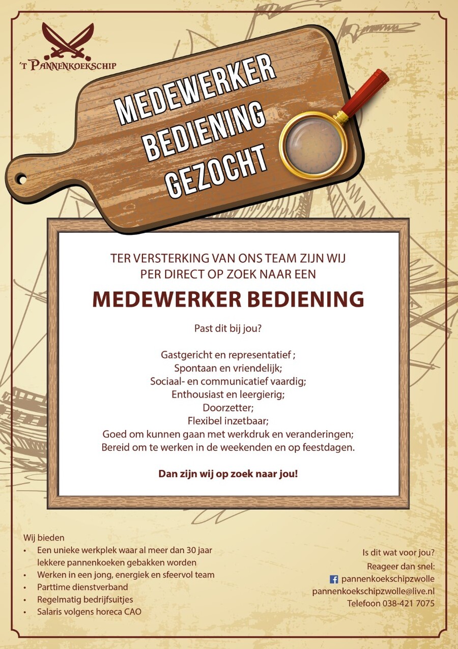 Op het Pannenkoekschip wat ruim 30 jaar geleden aangemeerd is in de Thorbeckegracht is op zoek naar extra bemanning!